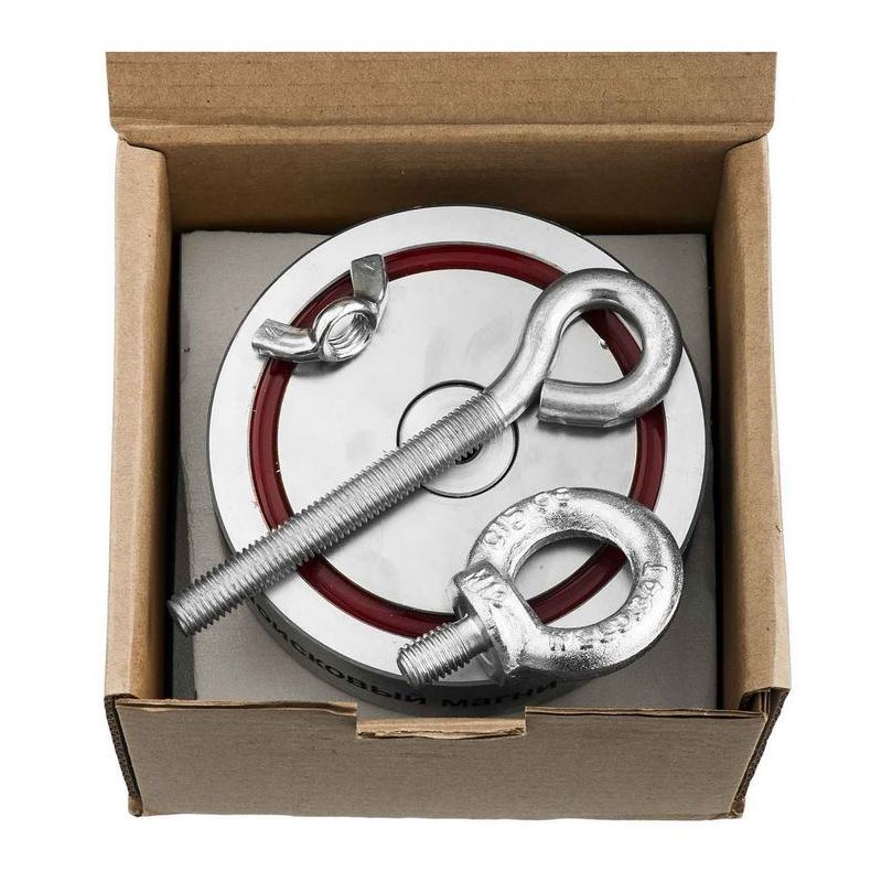 Один магнит хорошо, а два лучше. Так можно охарактеризовать двухсторонние поисковые магниты. Такой тип магнитов лучше всего подходит для трала дна водоемов: рек, озер и прудов. Они помогут найти и поднять со дна различные предметы, выполненные из ферромагнитных сплавов. Учитывая, что сила сцепления некоторых моделей таких магнитов достигает 800 кг, то можно достать тяжелые предметы.